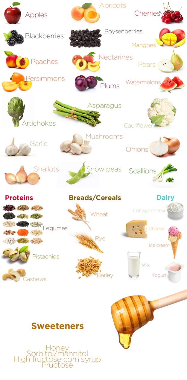 Dessverre finn me desse FODMAP karbohydrata i mange matvarer. Skal ein gå gjennom alle kan lista bli skremmande lang. Men hugs (!): det er ikkje sikkert at du er intolerant mot alle matvarene. Nokre av desse toler du, andre toler du litt av og nokre bør du holda deg heilt borte fra. Her må du rett og slett eksperimentera litt.