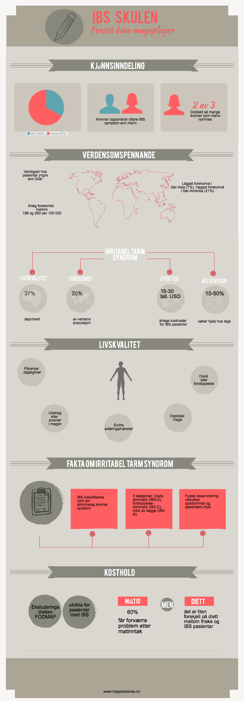 IBS rammar 20% av verdens befolkning og det rapporteres oftare hos kvinner enn hos menn.